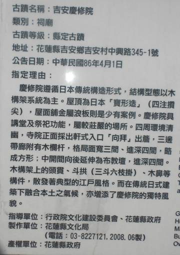 1917年蓋的,原本是日本真言宗高野派教所,是在花蓮的日本人的信仰中心。