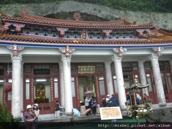 建於1972年,屬於中西合壁的建築, 全殿有12根羅馬圓柱,殿內的三聖佛是用巨樟雕刻而成,再漆成金身。
