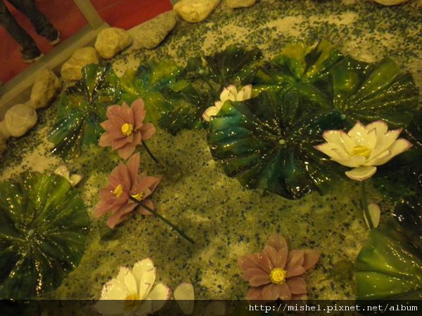 模仿鹿港八景之一的「楊橋踏月」 ,可觀賞雅緻的琉璃荷花、青蛙及甕牆。