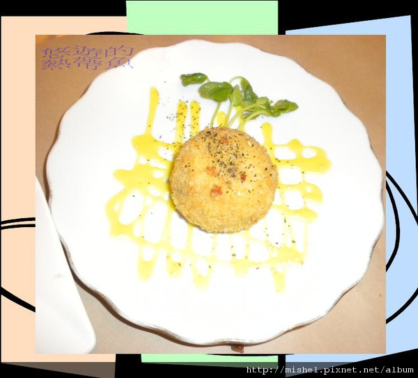 經典套餐的-烤鮭魚飯糰 烤過之後應該還有小炸一下,切開後香味四溢!