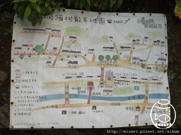 在園區的地圖上找我們的目的地-貓街,Morning找到了....