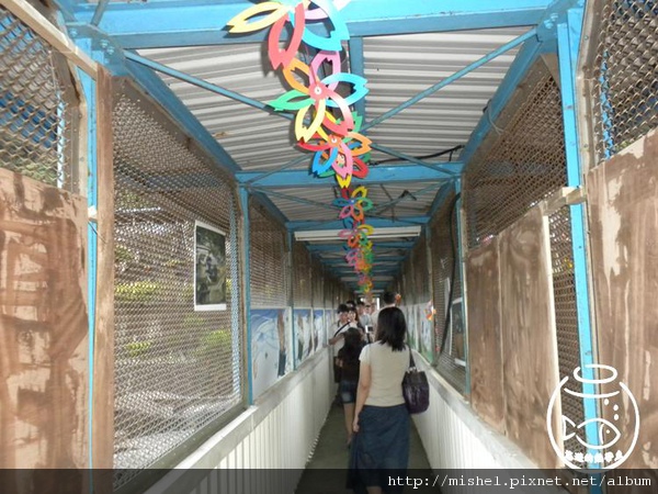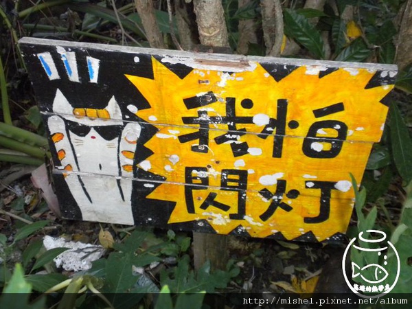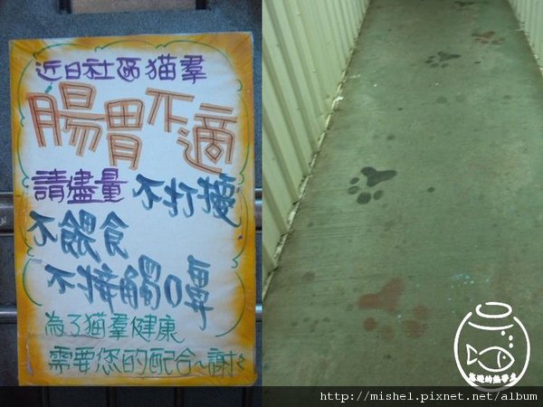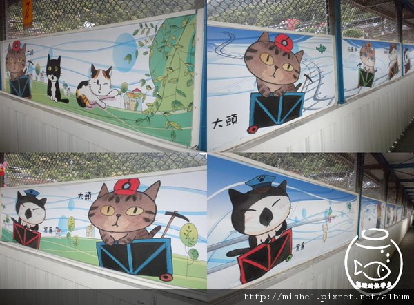 沿途有些海報,提醒著遊客一些注意事項,地板上還有貓腳印