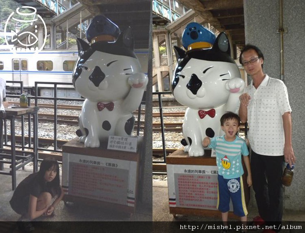 幾個月前號稱四大天王之一的黑鼻因為受傷而心肺衰竭死亡,為了紀念曾經帶給民眾美好回憶的黑鼻,台鐵特地為牠建造了一坐雕像,還封牠為永遠的列車長 民眾圍繞著雕像拍照,而佇立在侯硐車站前的黑鼻就像是和來來往往的遊客打招呼更像是守謢著這一座生生不息的貓咪之城