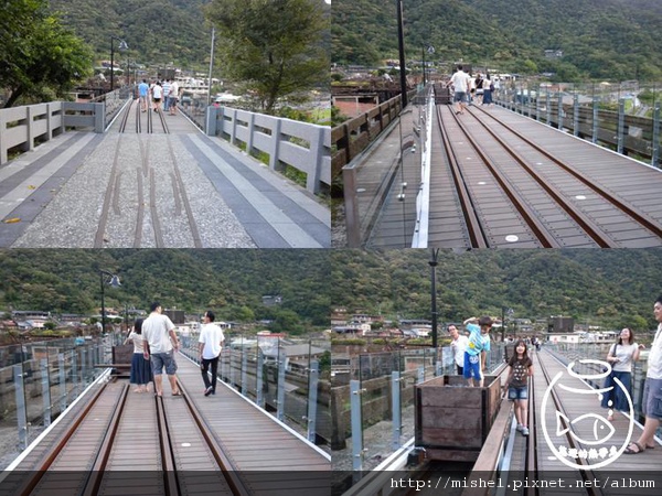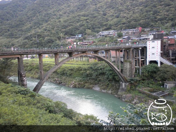 橫跨在基隆河上游,古樸美麗,以半圓拱撐住結構,橋面還有運煤車使用的鐵軌