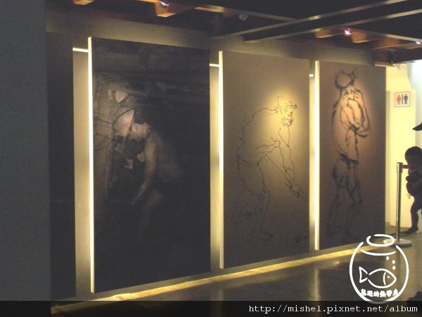 一樓展出猴硐礦業歷史圖文資料及照片, 館內也展出畫家洪瑞麟一系列以瑞芳礦工工作為背景的寫實作品