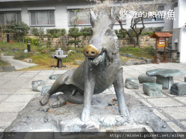 在五葉松神木旁有一隻仿自加拿大維多利亞公園銅製的山豬,不是因為其造型特別而廣受遊客喜愛,而是因為其剛好位處風水上的桃花穴所以又叫做姻緣豬,據說只要情侶來到這裡摸一摸銅豬的鼻子,都能有情人終成眷屬,且能使夫妻感情更加恩愛和諧,因此銅豬的鼻子明顯比其他部份來得更加閃閃發亮