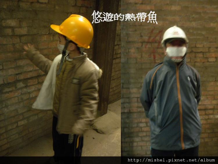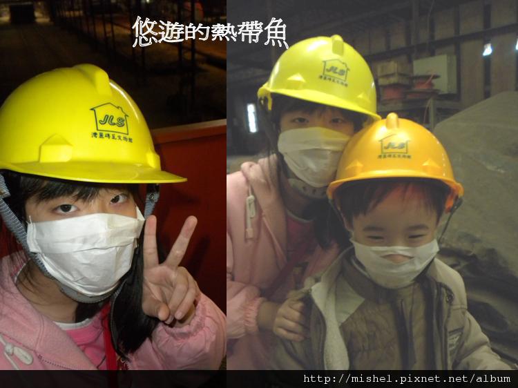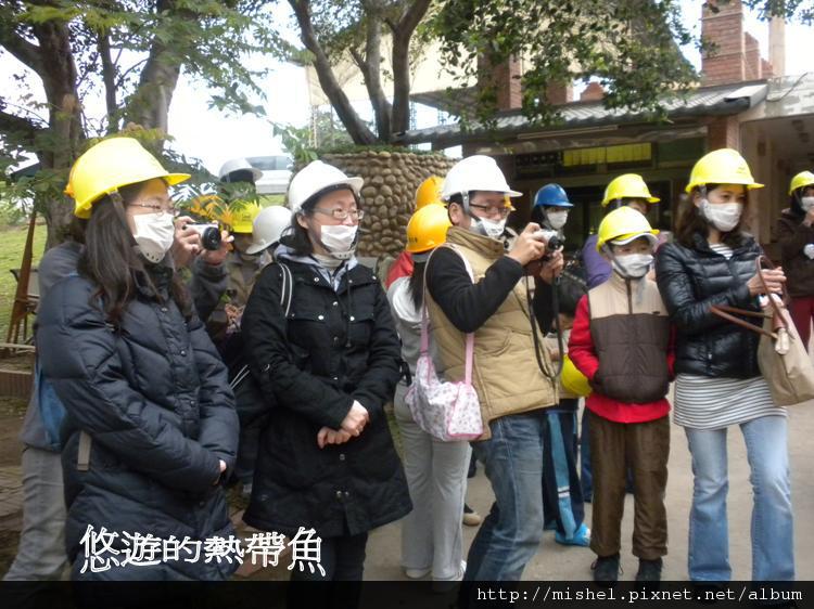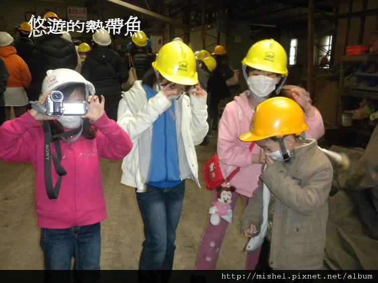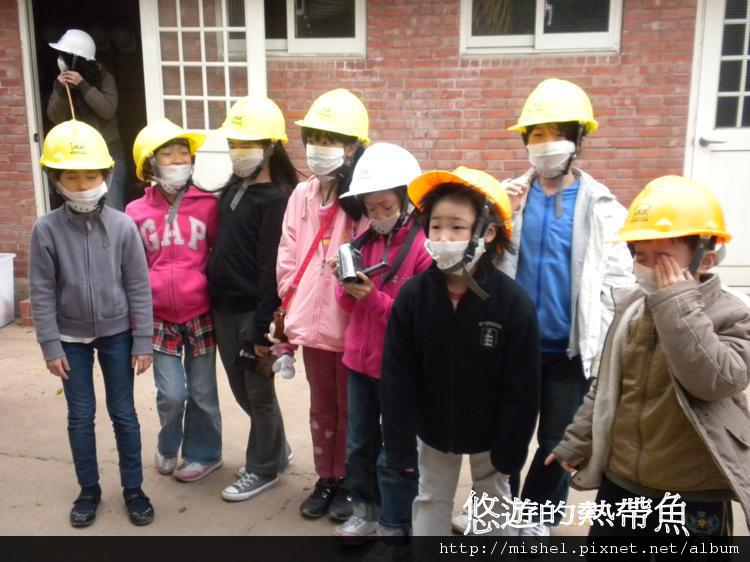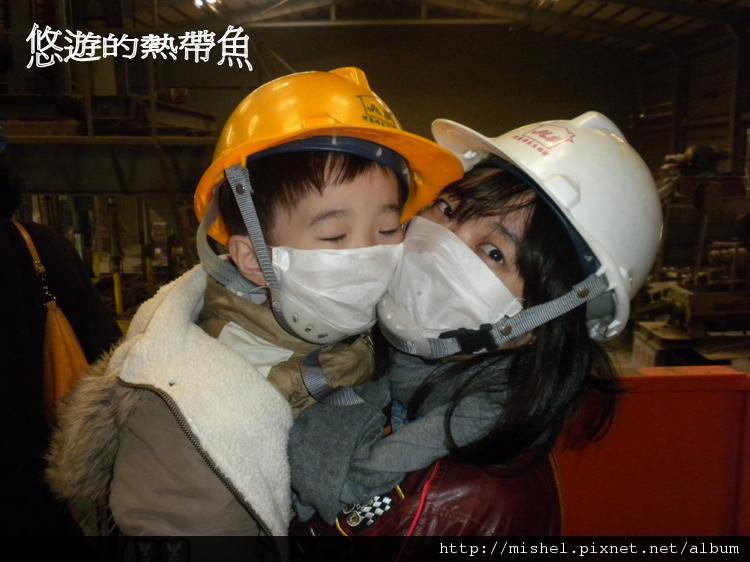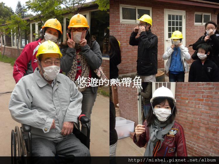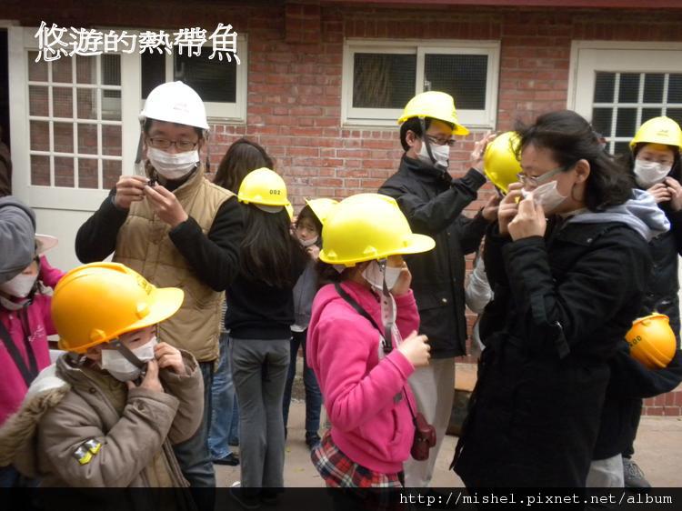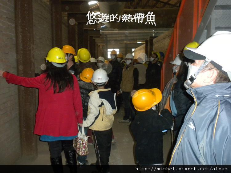 戴上口罩及頭盔,準備要進工廠參觀紅磚的製造過程囉..