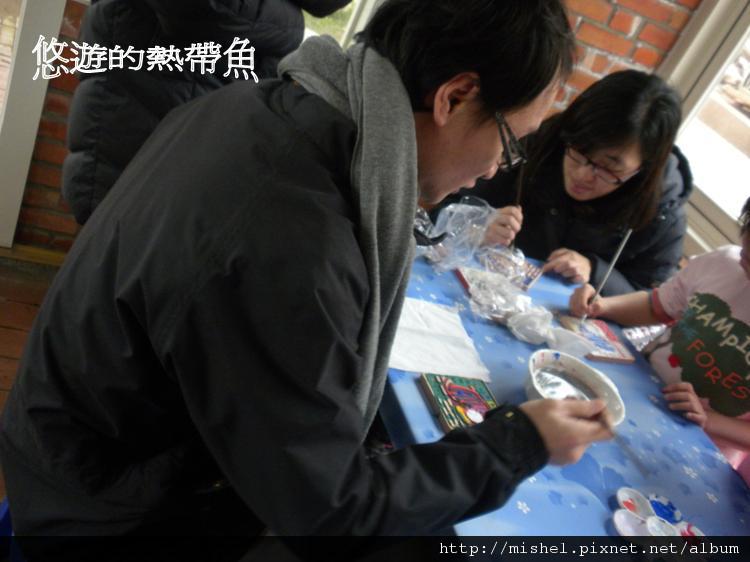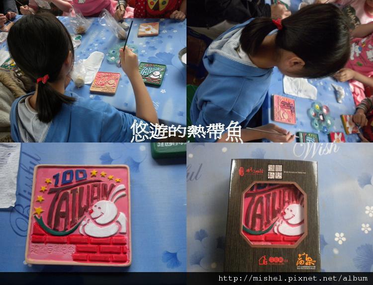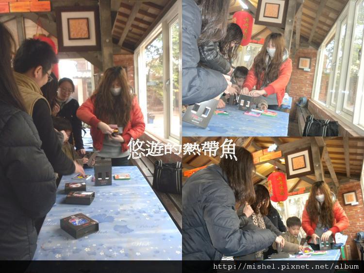 導覽員再教導大家如何將杯墊放入紙盒子裡