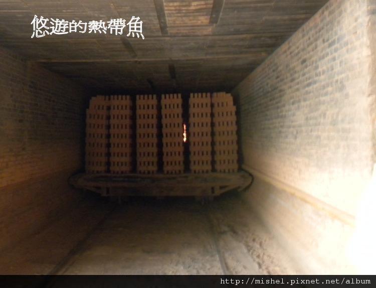 燃燒帶,導覽員掀開洞口,讓我們看到正在燒製的磚頭