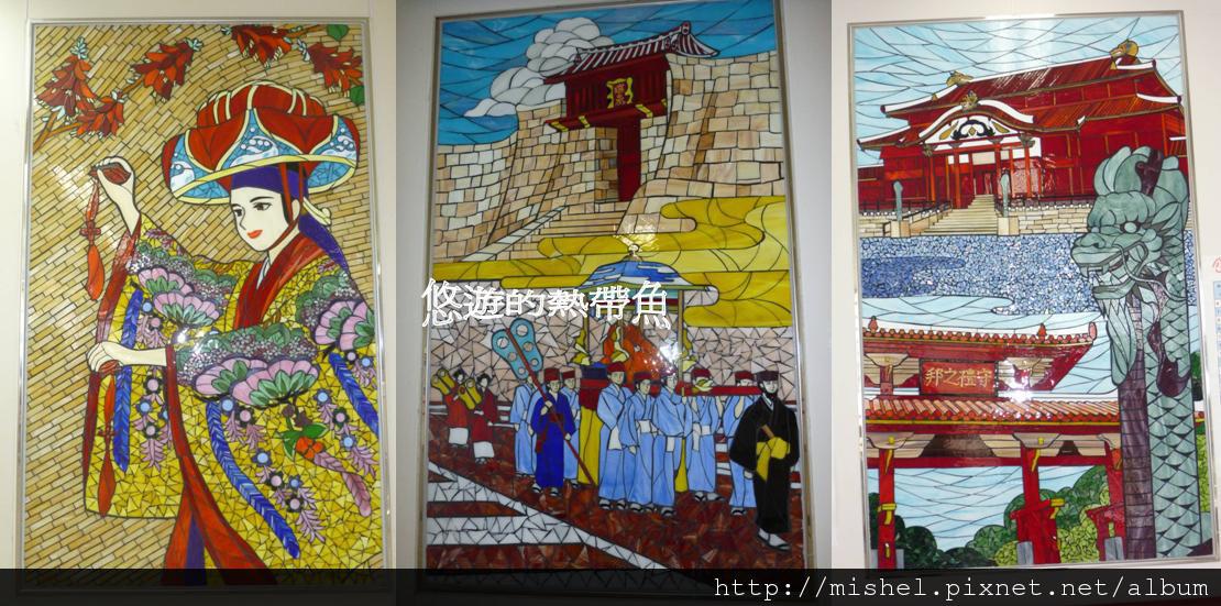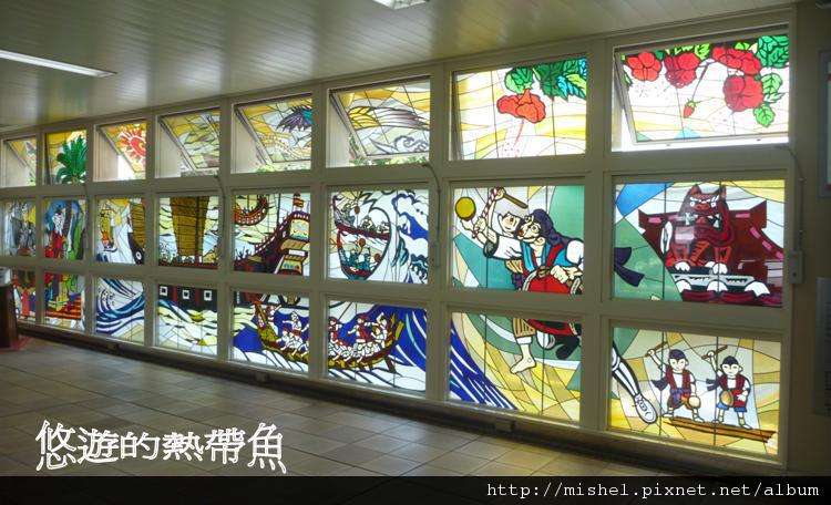 每個車站都有彩色玻璃裝飾,敘述著沖繩的歷史及特色