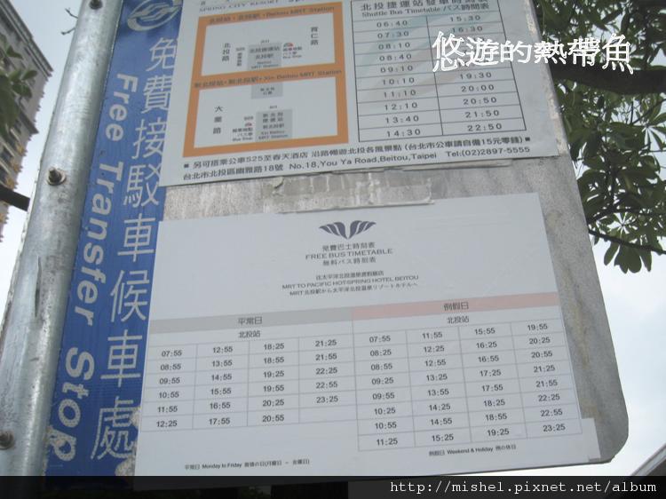 於北投站及新北投站皆有太平洋溫泉渡假飯店的免費接騻車可坐