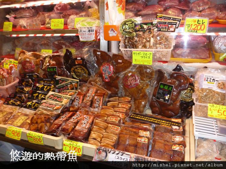 這裡除了生鮮豬肉,牛肉,雞肉外,也有現成的豬耳朵,豬頭皮,滷三層肉等道地的沖繩口味可以購買和試吃