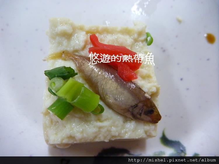 在比日本本土硬的豆腐上,放上鹽漬臭肚幼魚而成