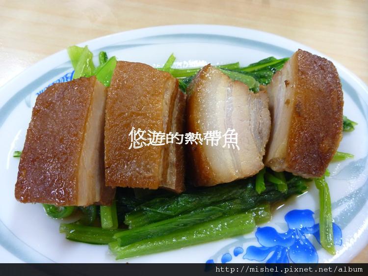 「豚の角煮」亦即是「東坡肉」的意思,連皮的話日文叫做「三枚肉」,沖繩的東坡肉的味道比較清淡一點,汁也沒有那麼濃
