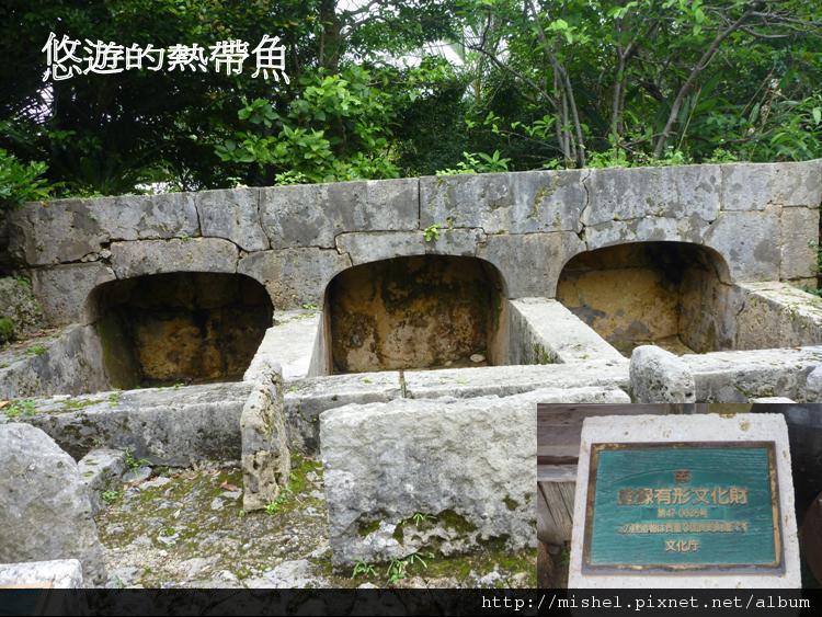 所謂的豬圈,是以前在住地內修的養豬的小屋子。 據說是從中國的南方傳來的。 用堆砌石頭的方法來隔間,有石造拱型屋頂跟茅草屋頂兩種。 在1816年,因被認為對城市衛生有不良影響,在區長立會的基礎上,各個家庭的豬圈的飼料槽都被毀掉,並禁止建造新的豬圈。 儘管,豬圈是沖繩民居里具有特色的設施,但是,在戰後就看不到了
