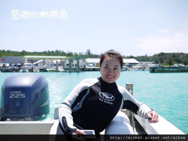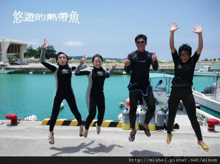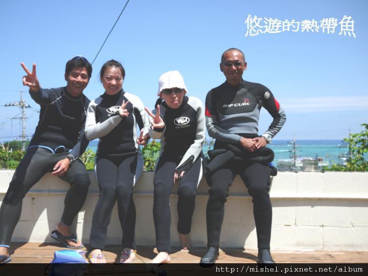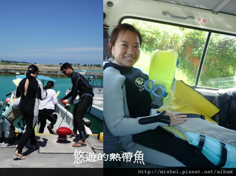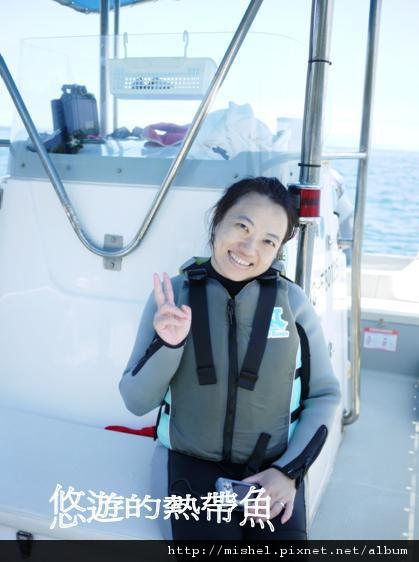 穿上潛水衣太熱了,所以後面的拉鍊先不拉..