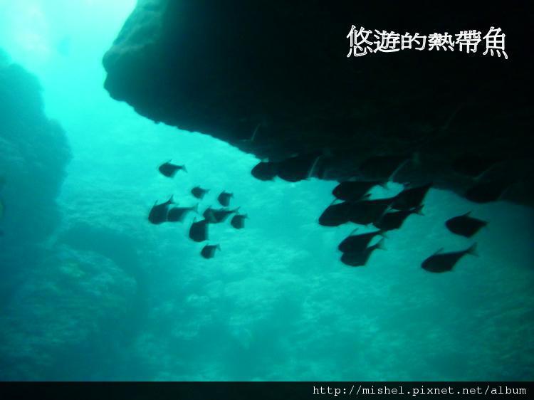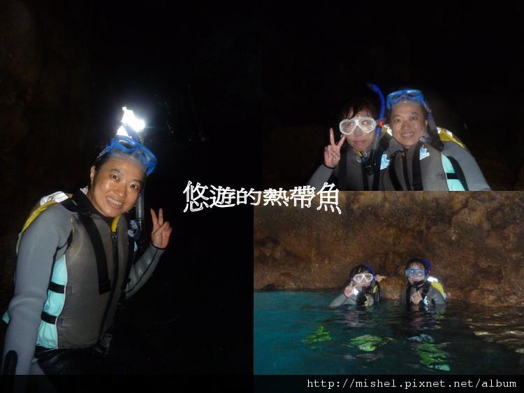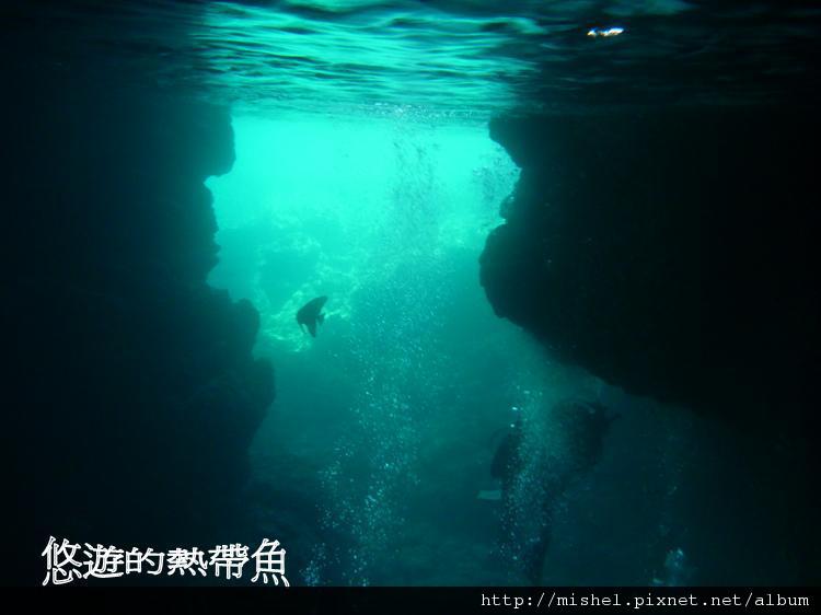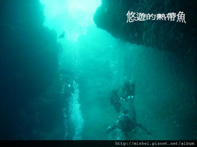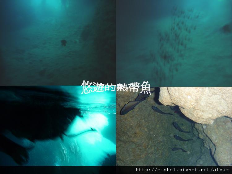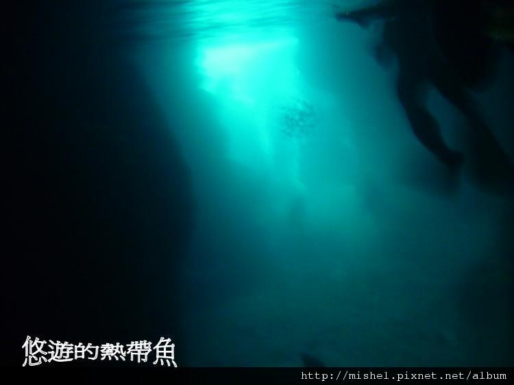 藍洞裡面因太黑暗,潛下去,什麼都看不到,直到教練將手上的手電筒借我拿到海底裡面照射,這才發現,滿滿都是魚...
