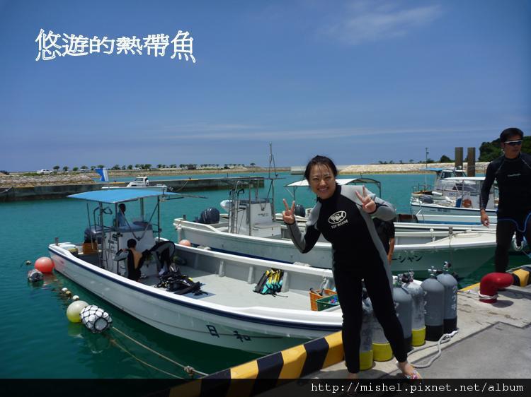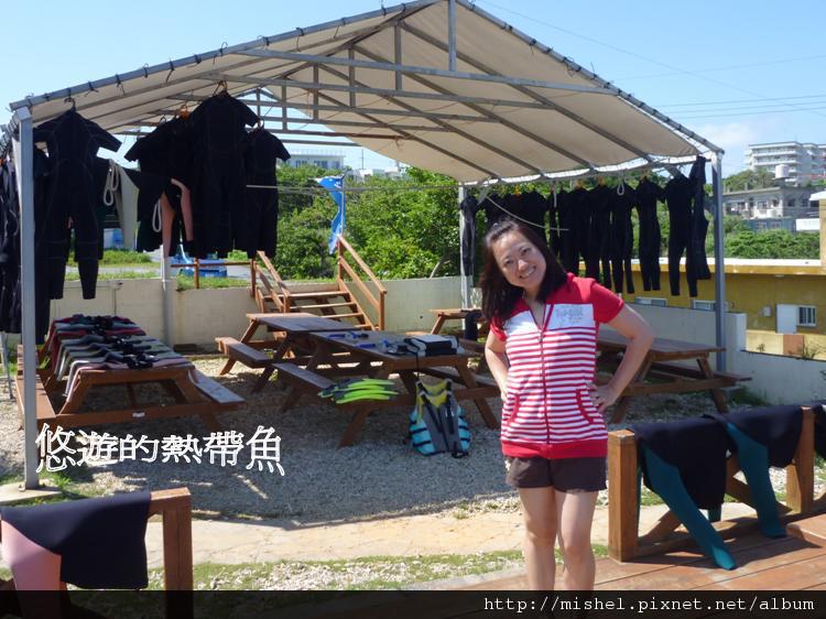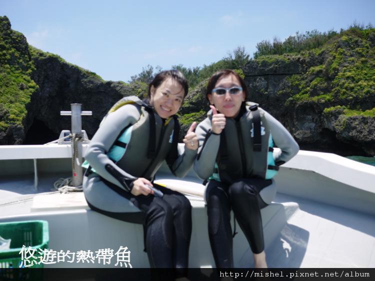 換完潛水裝,另外一位也是台灣過來帶浮潛的教練,剛帶一批遊客去藍洞浮潛回來