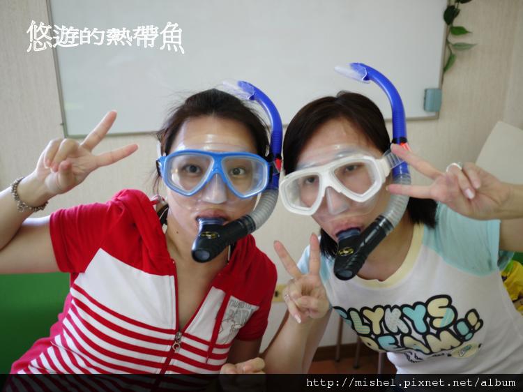 蛙鏡及呼吸管,看出來了嗎?Anita是白色蛙鏡,而我是藍色蛙鏡