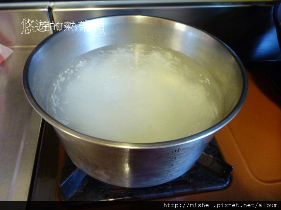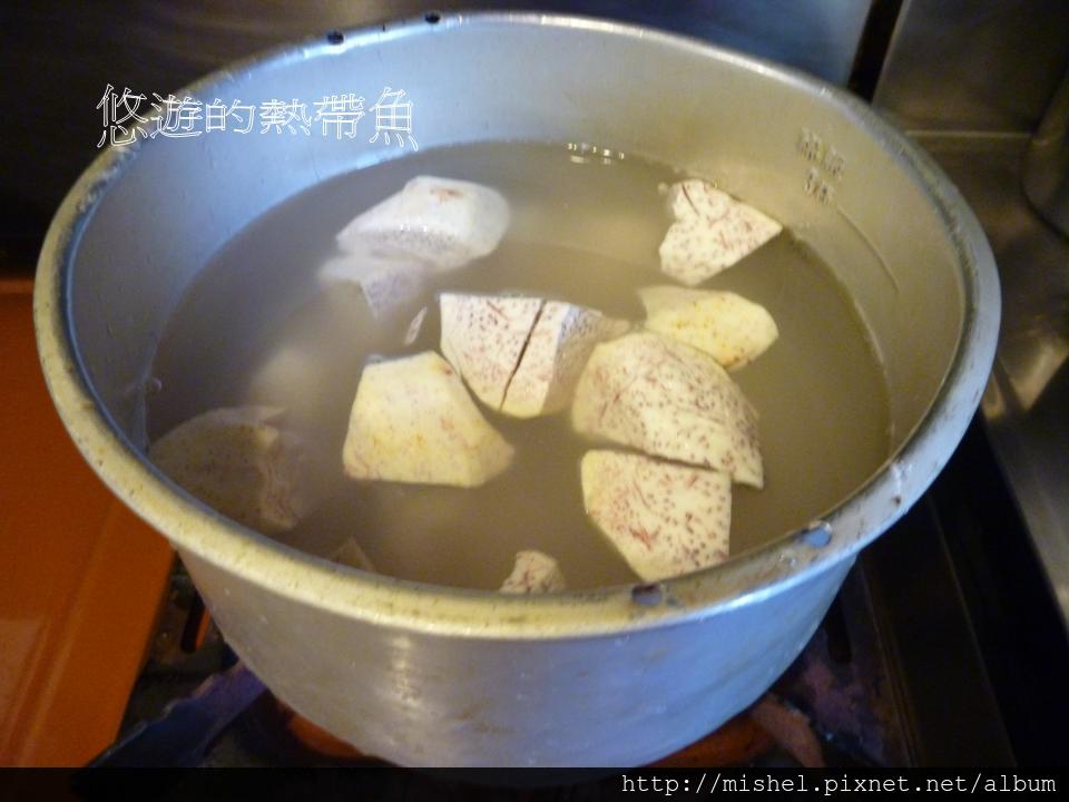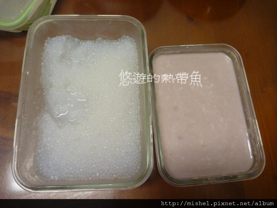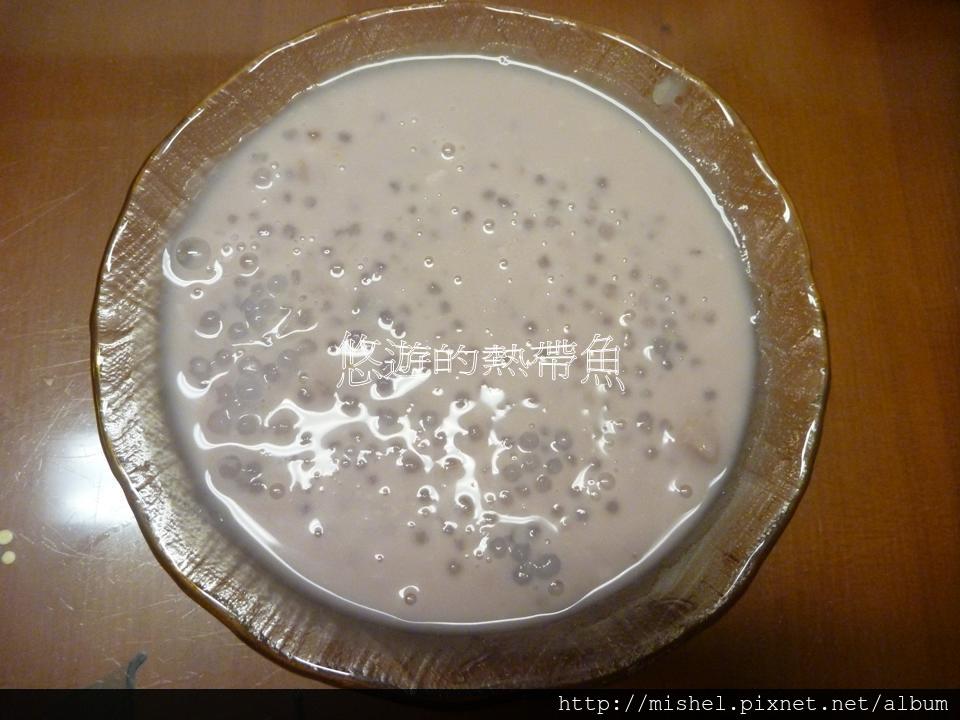 西米露沖冷水後瀝乾與芋頭湯分別盛起