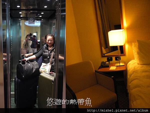 電梯好小,二個人加二件行李就塞滿了..