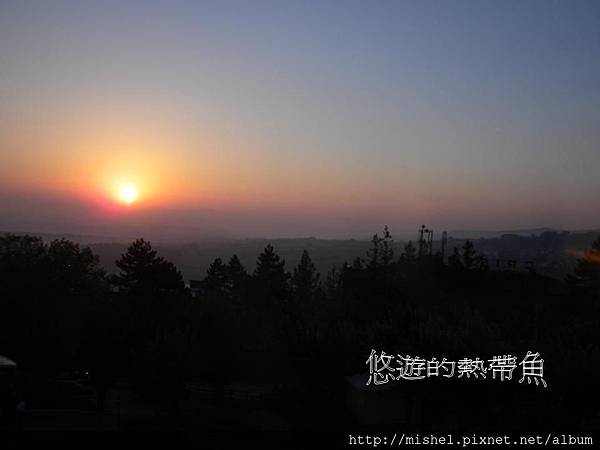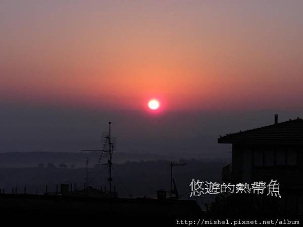在義大利,天比較晚亮,所以七點多起床時,就跟晚上一樣,八點多才有日出可看,在這裡可以每天看到日出喔..