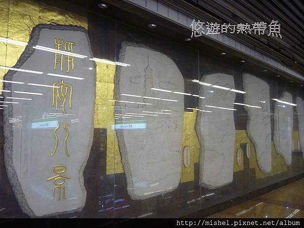 每個地鐵站各有特色,像靜安站就有靜安八景的石板